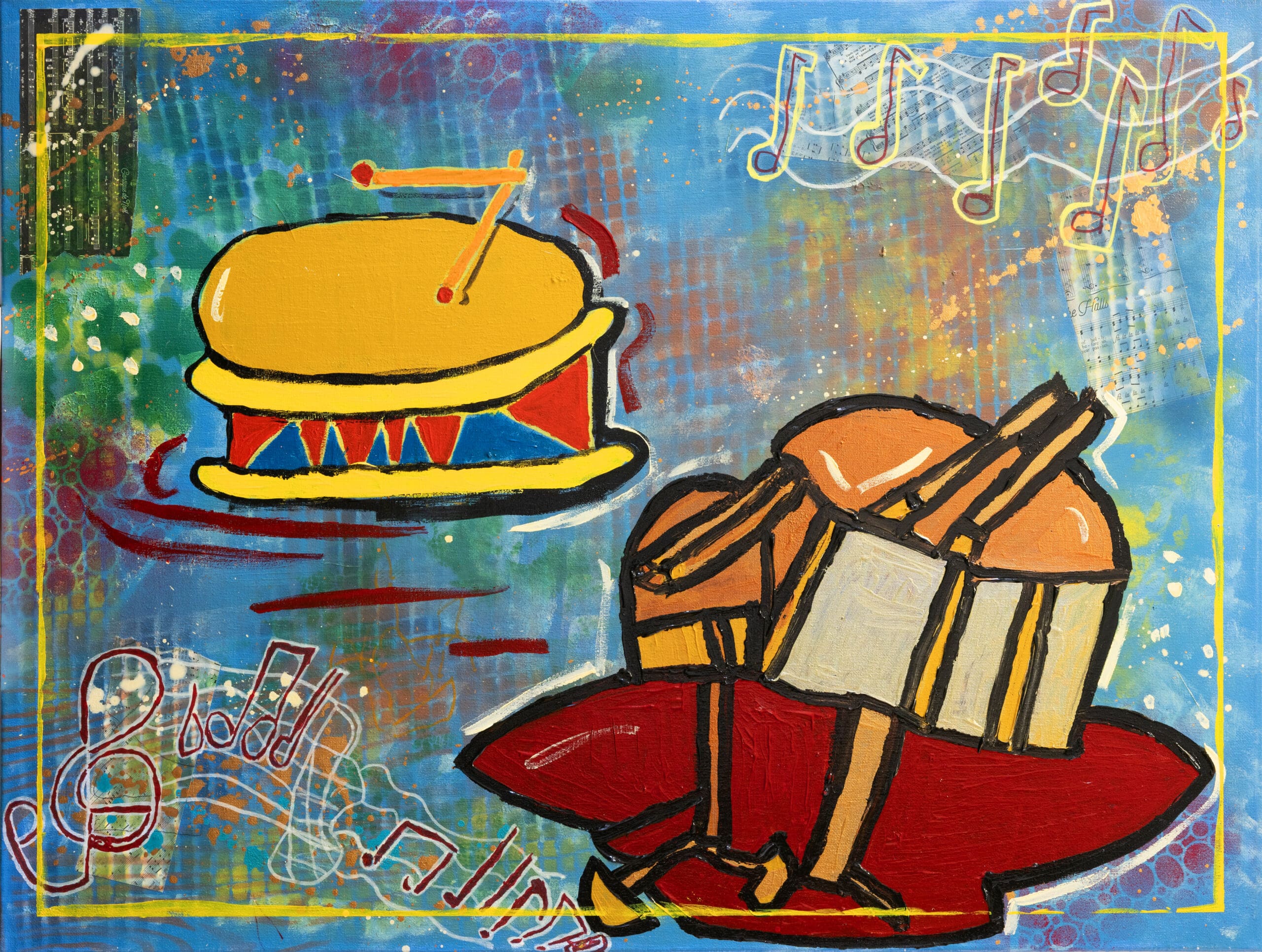 Tot 1 januari 2026 kunt u bieden op vijf muzikale schilderijen van kunstenaars van de Kunstfabriek Oss. Zij maakten deze schilderijen van 80 bij 60 cm speciaal voor de 190e verjaardag van stadsharmonie KVA. Wilt u een bod uitbrengen op één van deze schilderijen? Stuur dan een mail naar pr@kva.siteinaanbouw.nl. Vermeld in de mail de hoogte van het bod en de naam van het schilderij waar u op biedt. Minimaal openingsbod op een schilderij is € 25,-. Het hoogste bod per schilderij houden we bij op deze pagina.